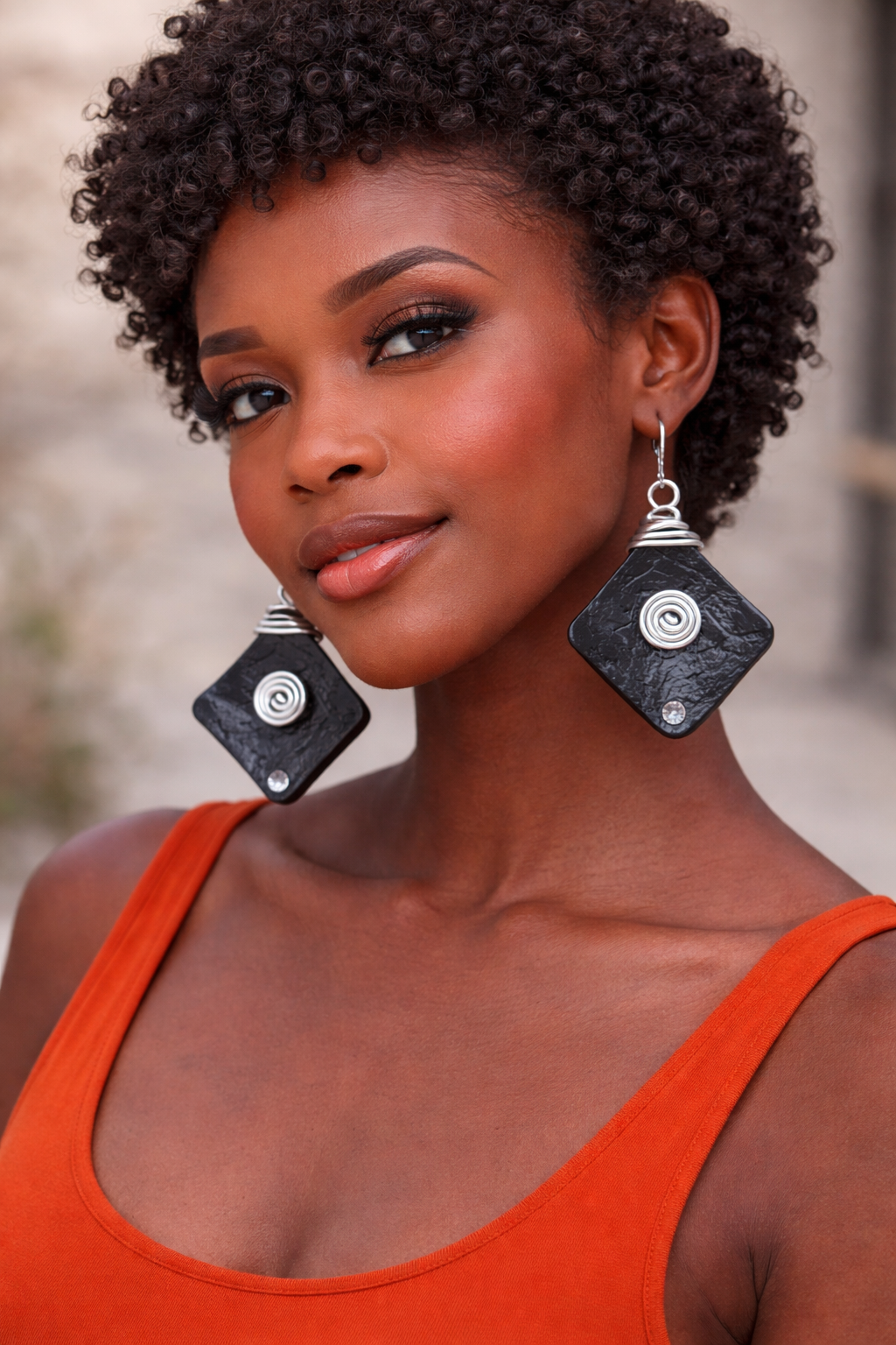 These earrings are light, bold, and impossible to ignore. Handcrafted from recycled wood and...