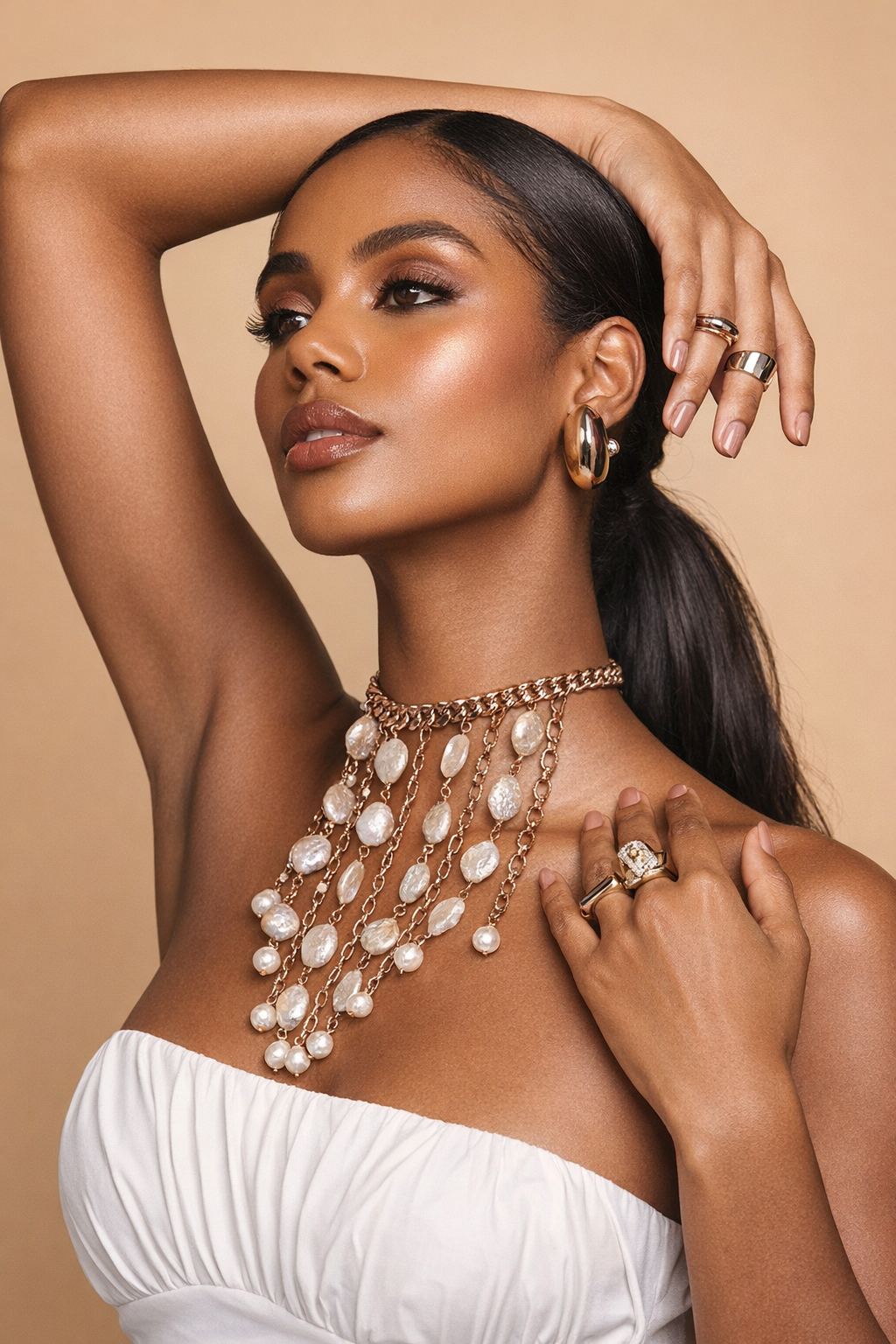 This is not everyday jewelry. This is entrance jewelry. The Quinn Necklace Gold is drama done...