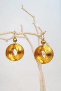 These earrings are light, bold, and impossible to ignore. Handcrafted from recycled wood and bamboo, each pair is hand painted to achieve a rich, glowing gold finish that brings warmth to the face without the weight. They give you presence, not pressure.