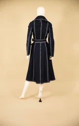 Sophisticated. Strong. Unapologetically stylish. Our Denim Belted Trench Dress redefines casual elegance with its tailored silhouette and statement double-belt detail. The contrast stitching highlights every curve, while the flared hem adds graceful movement and femininity. Designed to be worn as a dress or lightweight coat, this versatile piece transitions seamlessly from day to evening — a true wardrobe power player.