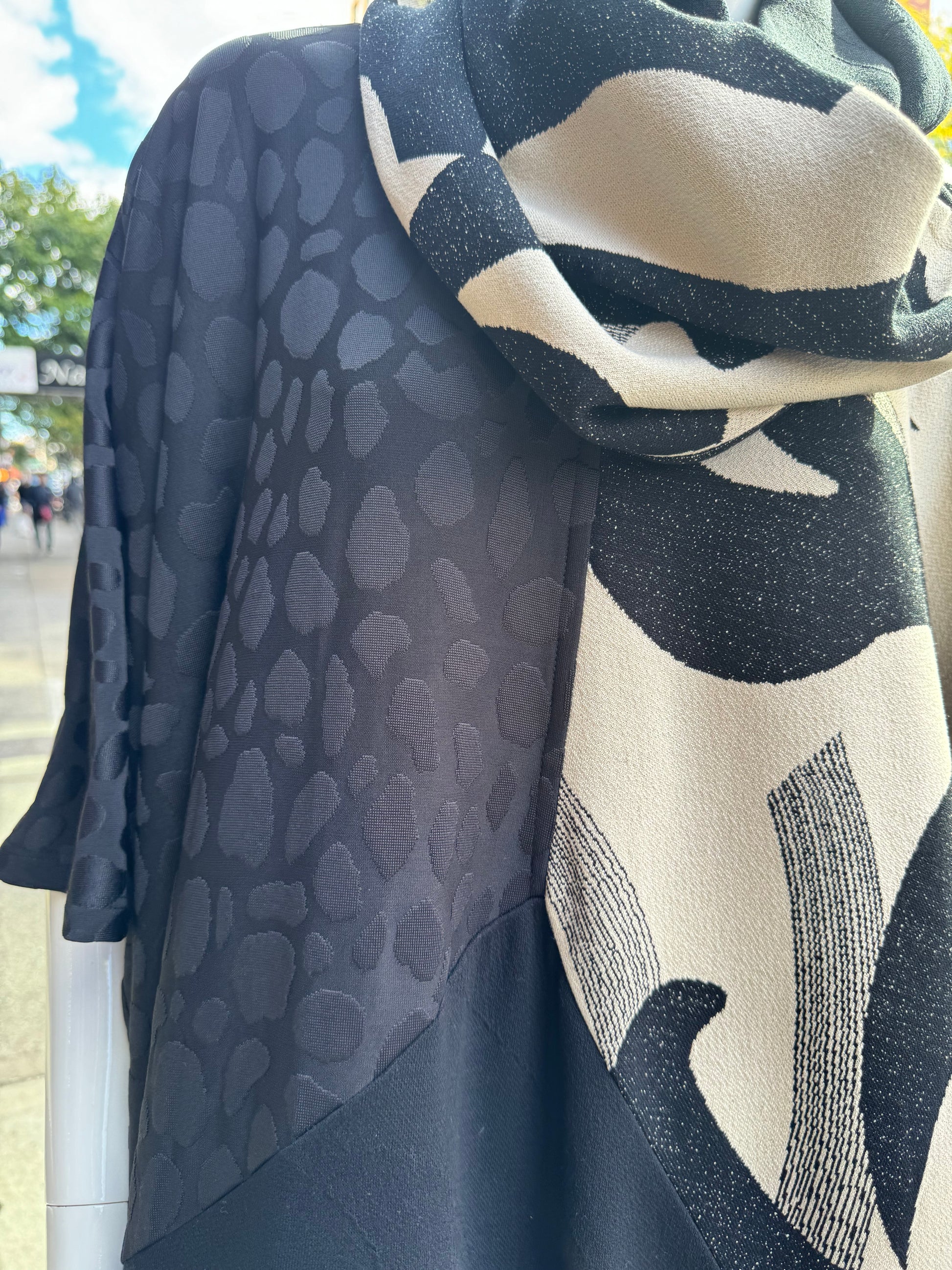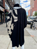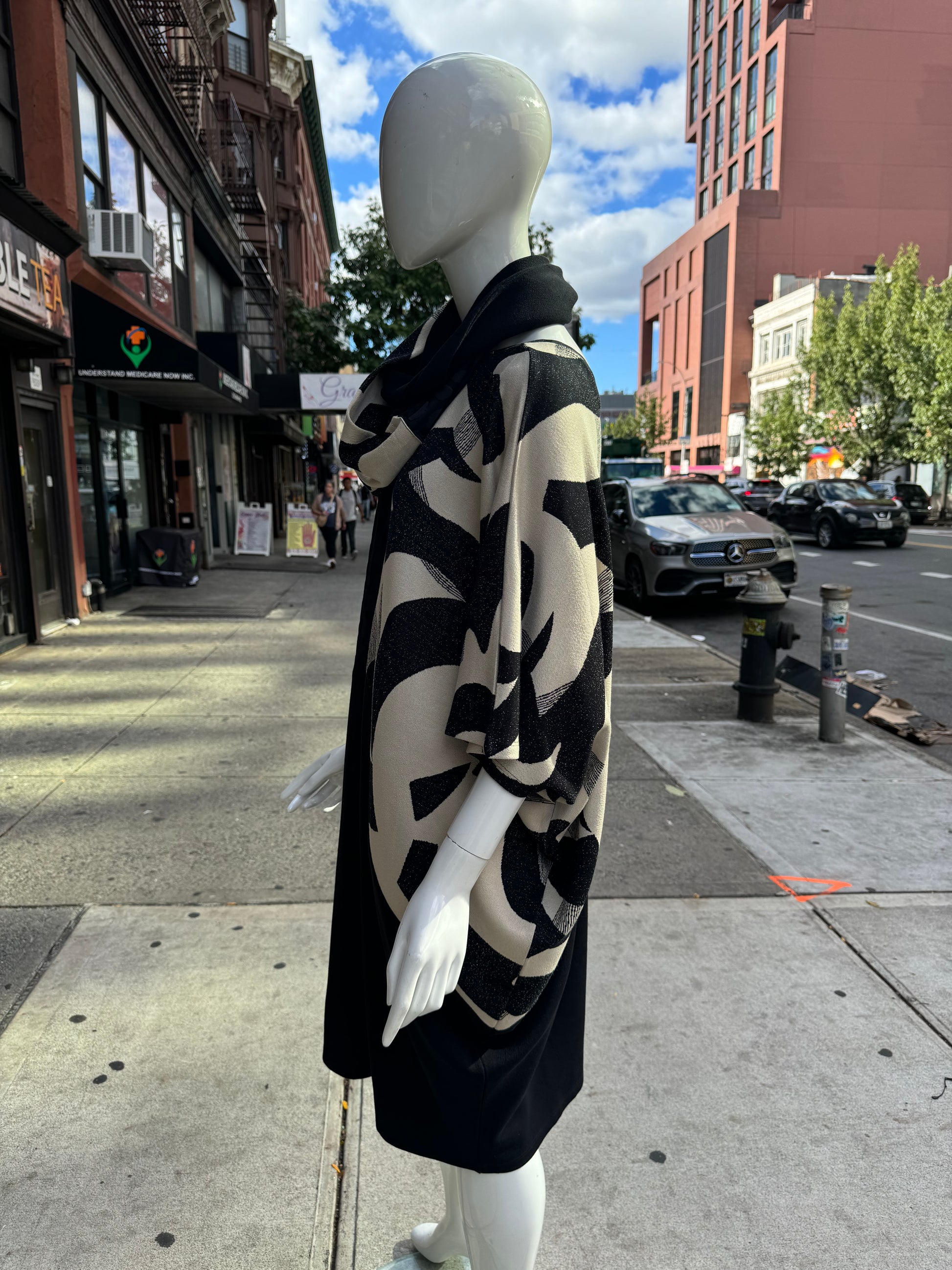 Turn heads in the effortlessly chic Dolman Sleeve Print Nora Dress. This black-and-white beauty features a bold, funky abstract print that makes a statement with every step. The flowy silhouette drapes beautifully, while the dolman sleeves add movement and modern flair. Comfortable, artistic, and unmistakably stylish — it’s the perfect dress for the woman who loves to stand out with ease.