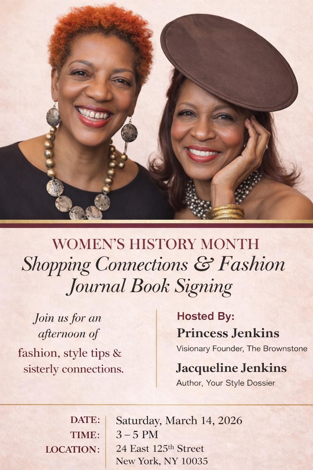 Join Princess Jenkins founder of The Brownstone and Fashionista & Author Jackie Jenkins, for a fun filled day of fashion play and education. Featuring Jackie's book Style Dossier., learn tips, tricks and techniques to keep you stylist and unique